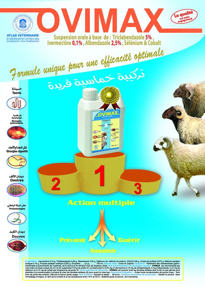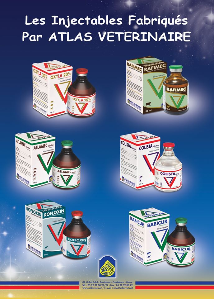 ATLAS VETERINAIRE est une institution pharmaceutique et vétérinaire marocaine regroupant tous les métiers pharmaceutiques vétérinaires : développement, fabrication et distribution de médicaments vétérinaires (anti-parasitaires, anti-infectieux, additifs, suppléments, vitamines et vaccins,